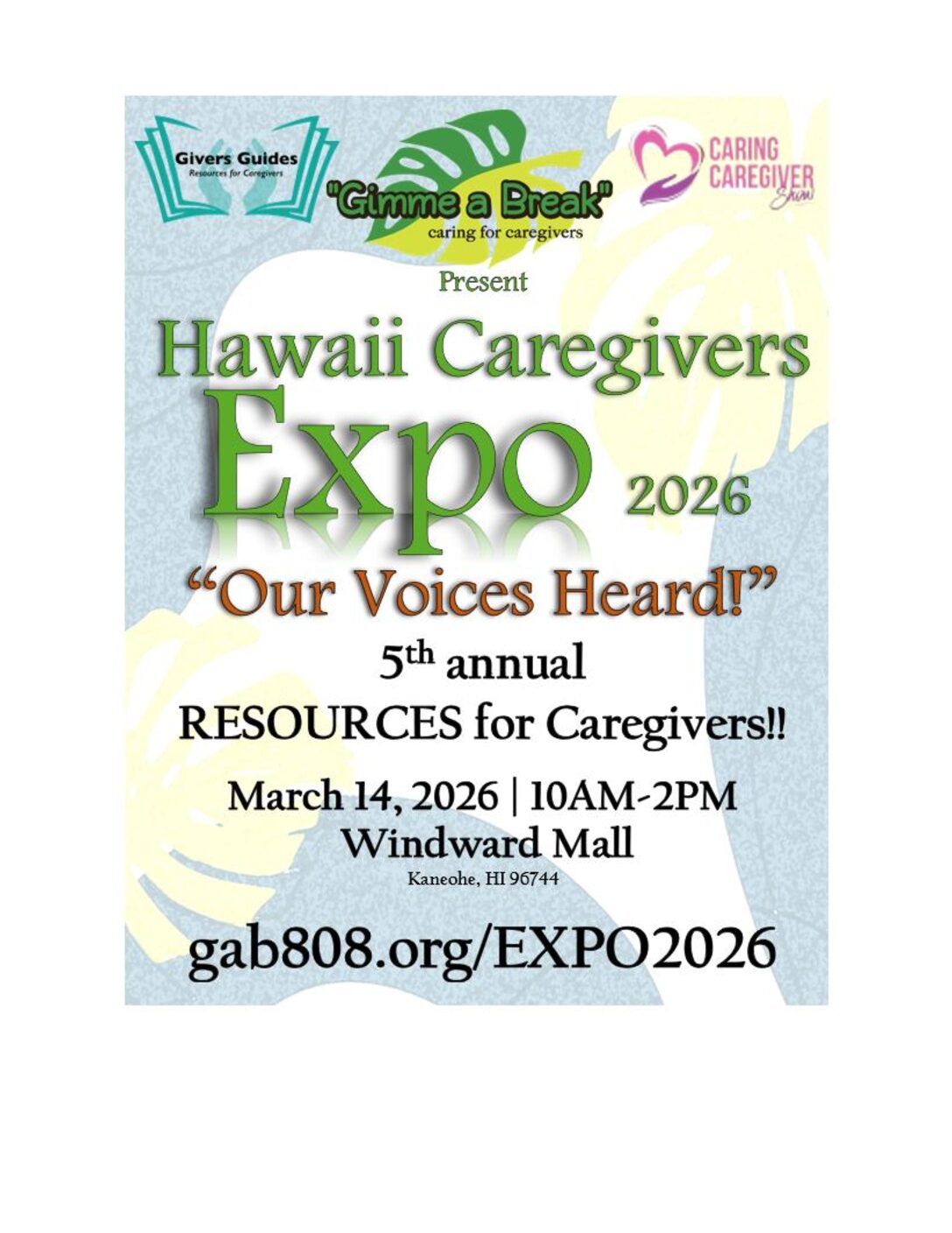 Join “Gimme a Break” for the Hawaiʻi Caregivers Expo 2026, “Our Voices Heard” – Resources for Caregivers
